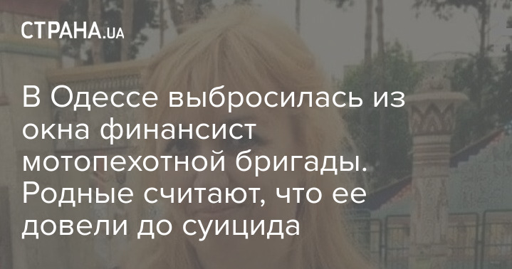 В Одессе выбросилась из окна финансист мотопехотной бригады. Родные считают, что ее довели до суицида