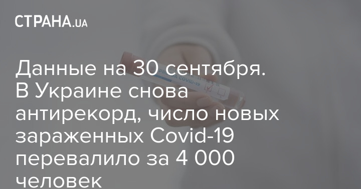По состоянию на утро среды, 30 сентября, в Украине подтвердилось еще 4 027 новых случаев заражения коронавирусом. Общее число заболевших достигло отметки в 208 959 человека. И это новый печальный антирекорд. Предыдущий был установлен 26 сентября, когда за сутки выявили 3 833 заболевших.