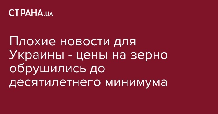 Плохие новости для Украины - цены на зерно обрушились до десятилетнего минимума