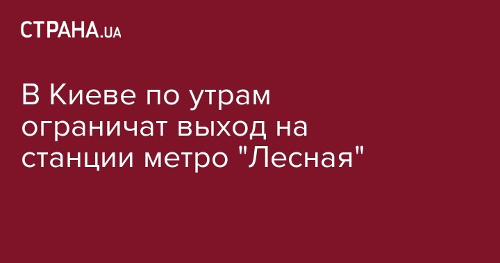 С 30 августа по 6 октября в утреннее время выход на станции метро "Лесная" на красной линии будет частично закрыт. Об ограничениях сообщает пресс-служба киевского метрополитена.