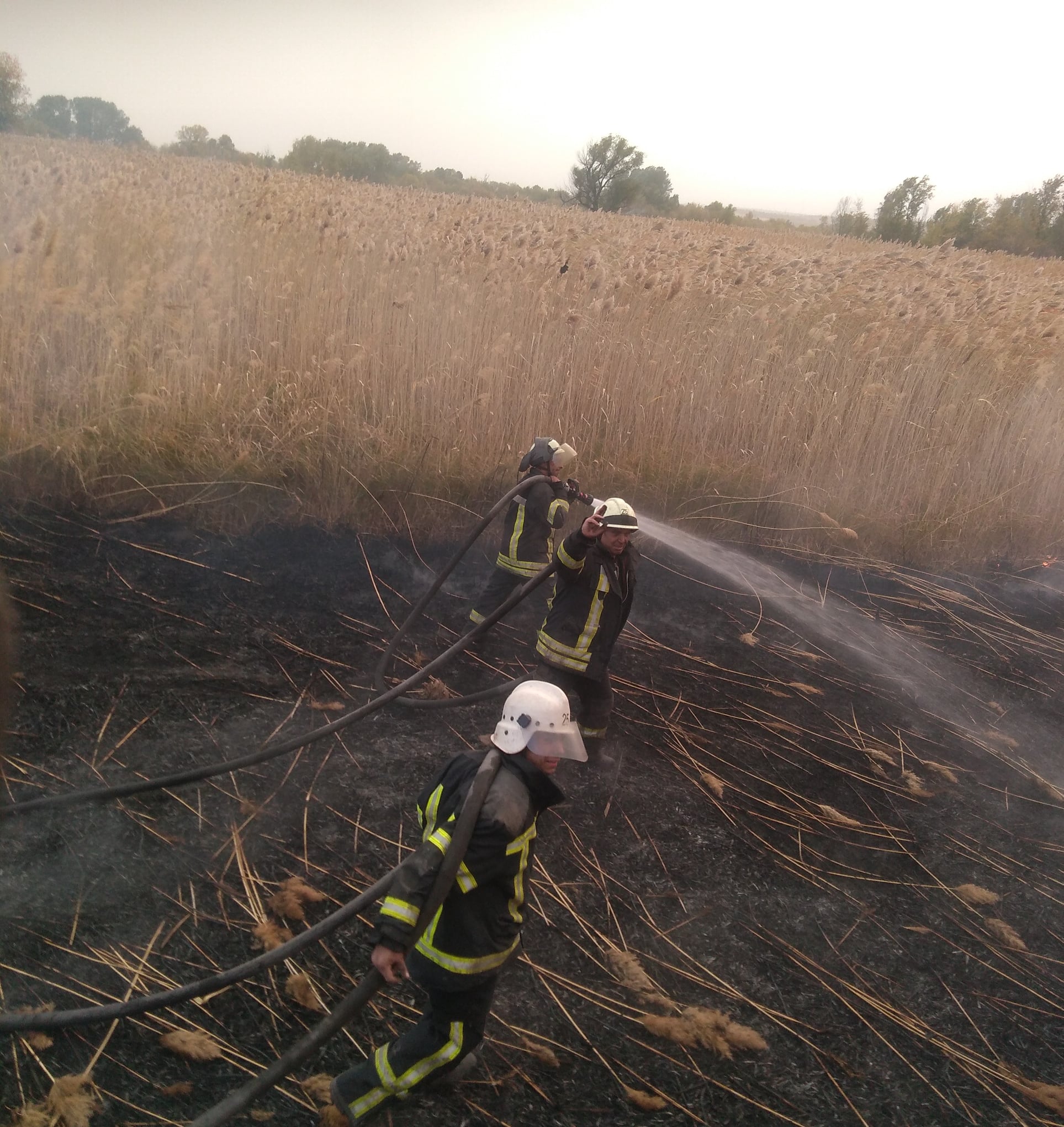 • между селами Песчаное, Нижнетеплое, Артема (Станично-Луганский район) - возгорание камыша и сухой растительности на площади более 110 га.