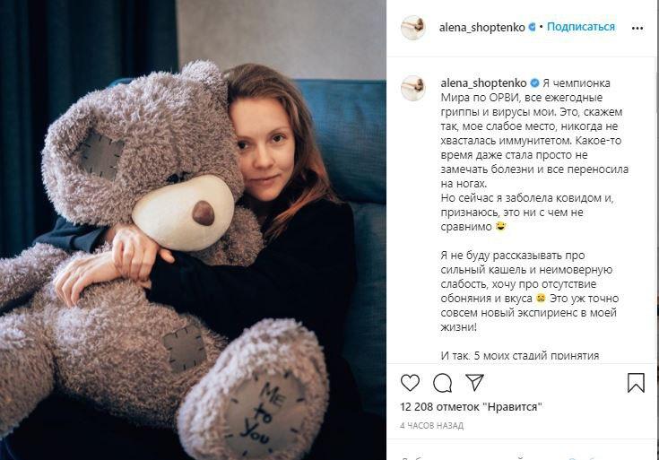 "Я чемпионка мира по ОРВИ, все ежегодные гриппы и вирусы мои. Но сейчас я заболела ковидом и, признаюсь, это ни с чем не сравнимо. Я не буду рассказывать про сильный кашель и неимоверную слабость, хочу про отсутствие обоняния и вкуса. Это уж точно совсем новый опыт в моей жизни!", – написала она.