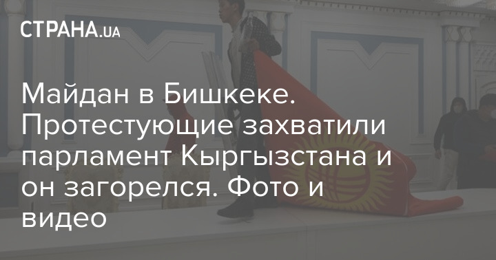 На нем видно, как демонстранты размахивают флагами из окон седьмого и других этажей здания, и что-то кричат. На фотографиях в соцсетях видно, что протестующие, находящиеся в парламентских кабинетах, ломают рамки с фотографиями главы государства. Так же в здании вспыхнул пожар.