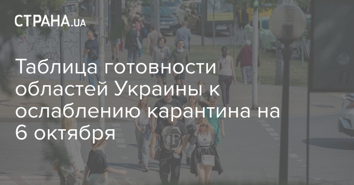 Таблица готовности областей Украины к ослаблению карантина на 6 октября