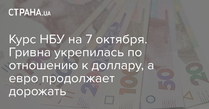 Курс НБУ на 7 октября. Гривна укрепилась по отношению к доллару, а евро продолжает дорожать