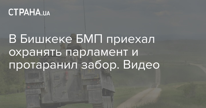 В Бишкеке БМП приехал охранять парламент и протаранил забор. Видео