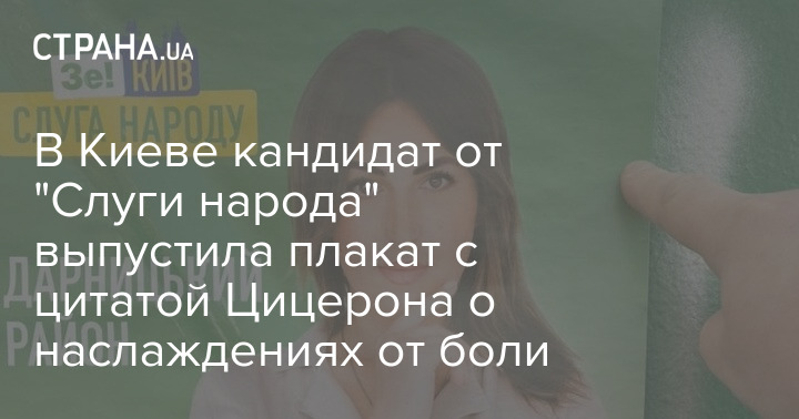 В Киеве кандидат от "Слуги народа" выпустила плакат с цитатой Цицерона о наслаждениях от боли