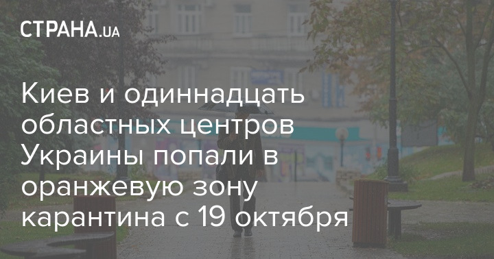 В "оранжевую" зону коронавирусного карантина с 00:00 19 октября, кроме девяти уже пребывавших там областных центров и Киева неделей ранее, будут отнесены Херсон и Ровно.