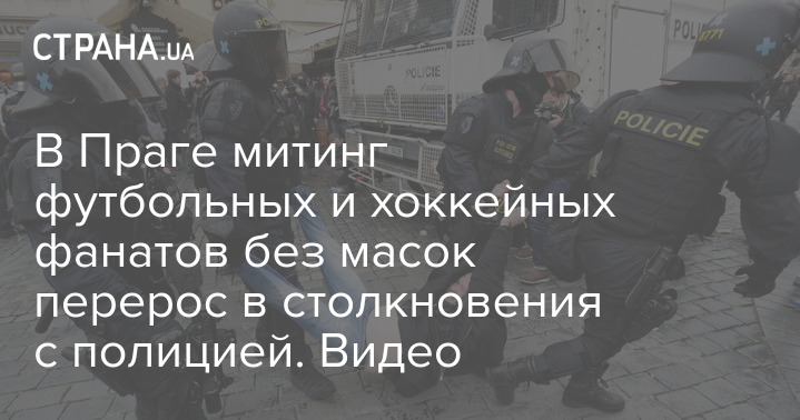 В Праге митинг футбольных и хоккейных фанатов без масок перерос в столкновения с полицией. Видео
