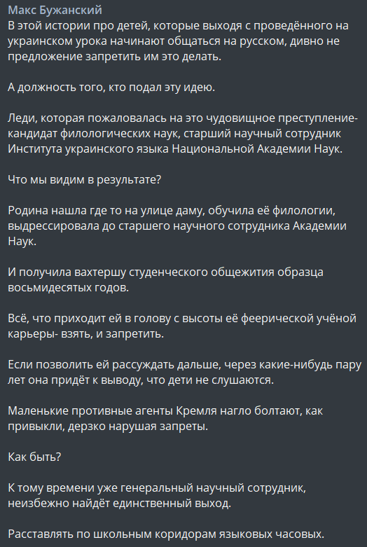 "В этой истории про детей, которые, выходя с проведённого на украинском урока, начинают общаться на русском, дивно не предложение запретить им это делать.