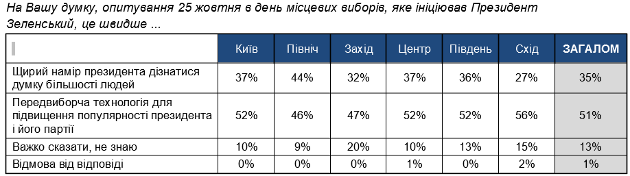 Только 35% украинцев верят в искреннее намерение президента узнать мнение людей, а 51% считают, что это предвыборная технология для повышения его популярности.