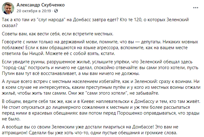 Хотя, посмотрите своими глазами. На ту разруху и те руины, в которых люди шестой год живут. И сравните с той ложью, которую вам вчера в Раде Зеленский врал, рассказывая, как много он для Донбасса "сделал", - пишет блогер Александр Скубченко.