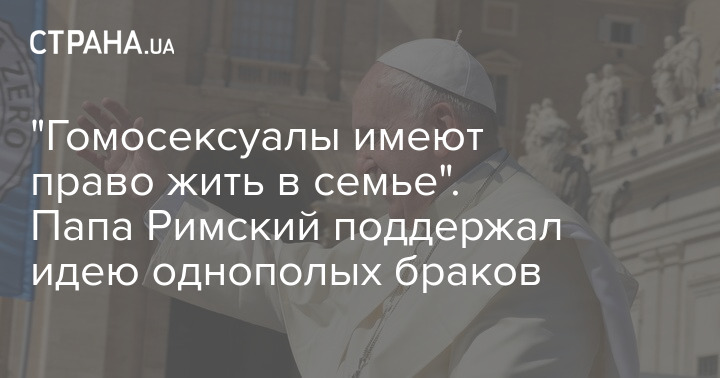 "Гомосексуалы имеют право жить в семье". Папа Римский поддержал идею однополых браков