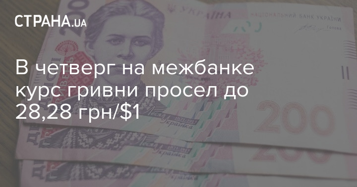 По данным Нацбанка Украины (НБУ), справочный курс гривни на межбанке в четверг укрепился до 28,25 грн/$1 с 28,29 грн/$1 в среду.