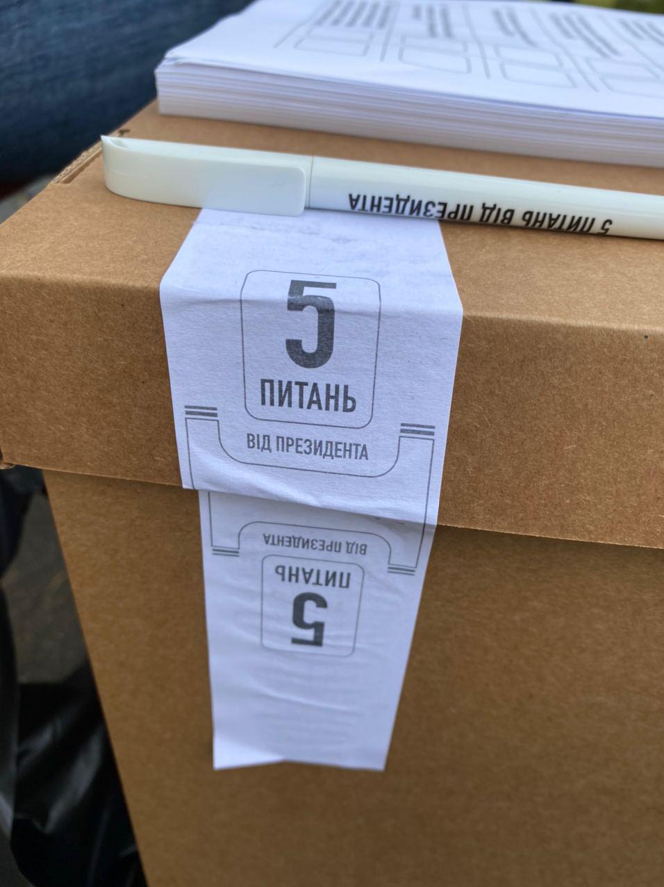 08:26 На избирательных участках по всей Украине уже начинают появляться волонтеры, проводящие опрос "5 вопросов от Президента". Они в брендированных жилетках и с брендированными коробочками. Видео публикует PavlovskyNEWS.