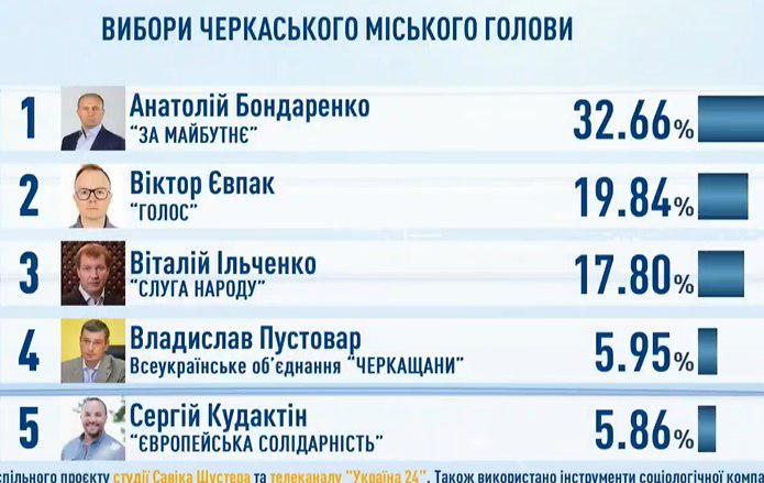 20:53 Экзитпол студии Савика Шустера и компании Liberty Report по выборам мэра в Черкассах.