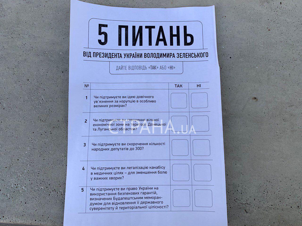 Опрос президента Украины Владимира Зеленского на входе в избирательные участки проводят волонтеры в черно-белых манишках с надписью "5 питань від президента" ("5 вопросов от президента", - с укр.). "Страна" следит за ходом избирательного процесса в обновляемом материале.
