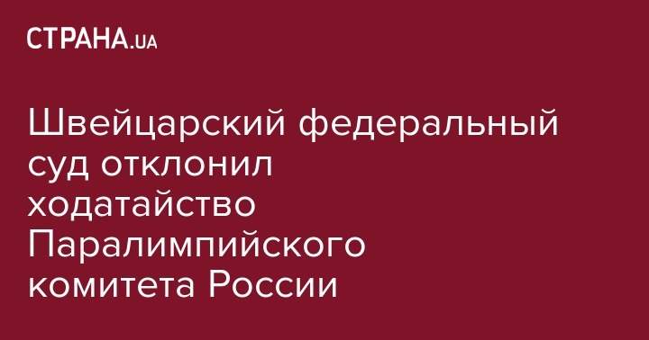 Швейцарский федеральный суд принял решение отказать в удовлетворении ходатайства ПКР России о допуске спортсменов с ограниченными возможностями для участия в Паралимпийских играх в Рио, передает ВВС.