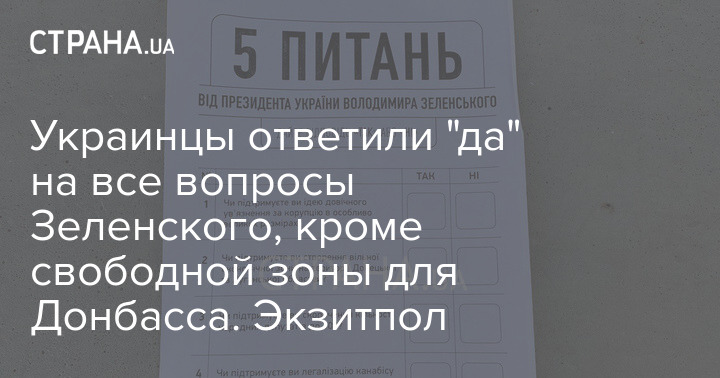 Группа "Рейтинг" опубликовала результаты экзитпола по опросу "5 вопросов президента". Опрос проводился возле избирательных участков по инициативе президента Украины Владимира Зеленского.