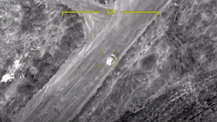За авто следил беспилотник, который и нанес удар. Скриншот с видео