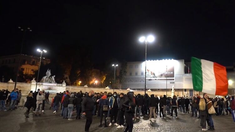 В ночь с 27 на 28 октября в Риме, где ввели комендантский час, недовольные карантинными ограничениями из-за коронавируса итальянцы утроили акцию протеста. Полиция разгоняла демонстрантов при помощи водометов.