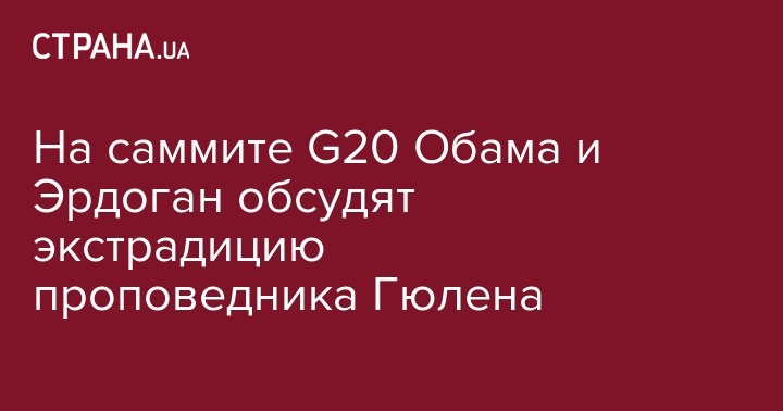 Президент США Барак Обама и президент Турции Реджеп Тайип Эрдоган обсудят экстрадицию проповедника Фетхуллаха Гюлена на саммите G20. Об этом передает Reuters со ссылкой на личного представителя президента Турции.