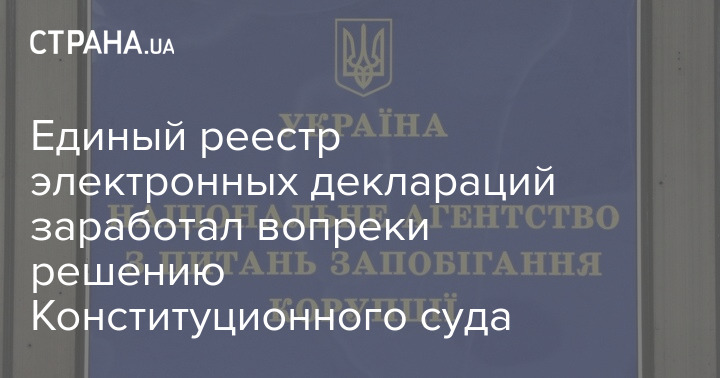 Национальное агентство по вопросам предотвращения коррупции (НАПК) возобновило работу Единого государственного реестра электронных деклараций вопреки решению Конституционного суда об отмене электронного декларирования.