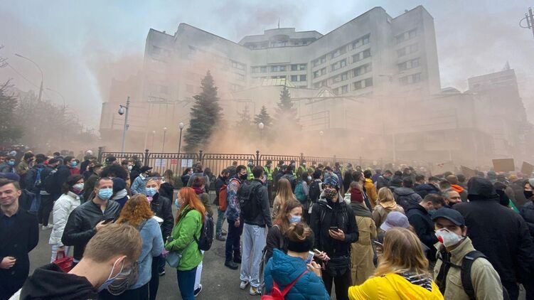 А утром 30 октября у здания Конституционного суда началась акция протеста. Протестующие забрасывают суд презервативами, но "снаряды" летят на самих митингующих.