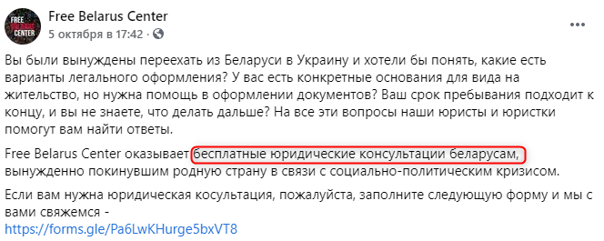 Также центр оказывает бесплатные юридические консультации белорусам, бежавшим от Лукашенко. Что также недешевое удовольствие.