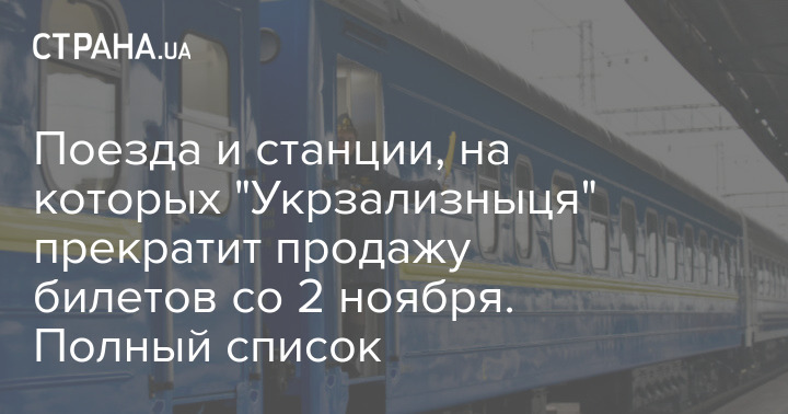 Поезда и станции, на которых "Укрзализныця" прекратит продажу билетов со 2 ноября. Полный список