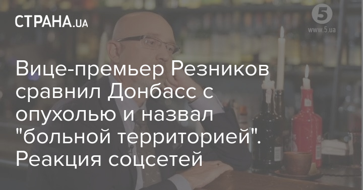 Вице-премьер по вопросам временно оккупированных территорий Алексей Резников сравнил Донбасс с "опухолью" и назвал "больными ментально территориями".
