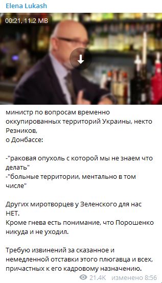 "министр по вопросам временно оккупированных территорий Украины, некто Резников,