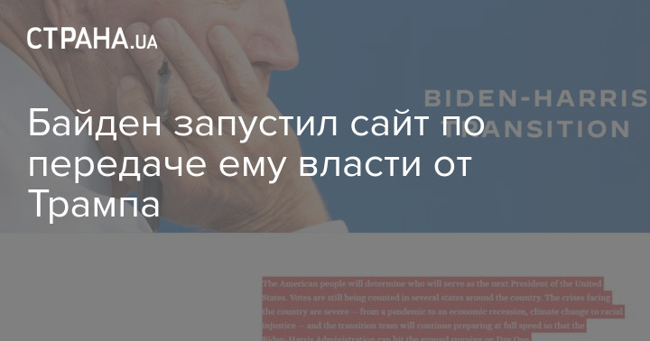 Несмотря на то, что в США еще продолжается подсчет голосов на выборах президента, кандидат от демократов Джо Байден настолько уверен в своей победе, что уж открыл сайт по передаче ему власти.