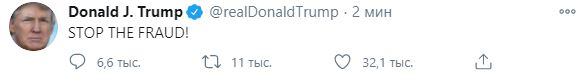 19:24 "Остановите мошенничество!" - написал Трамп в Twitter.
