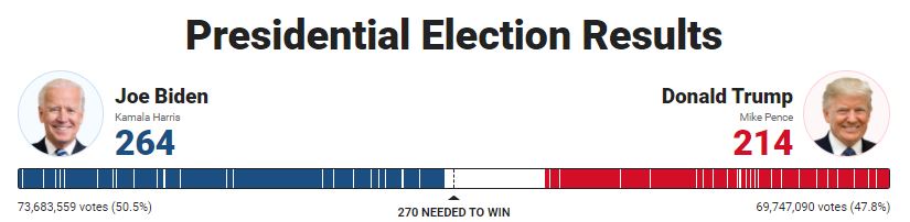 Итого: если в указаных штатах победят нынешние лидеры, то "счет" будет 270 против 268 в пользу Байдена.