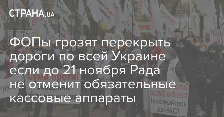 ФОПы грозят перекрыть дороги по всей Украине если до 21 ноября Рада не отменит обязательные кассовые аппараты