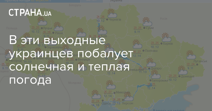 Украинцев ждет теплый осенний уик-энд со 2 по 4 сентября. По всей территории Украины в ближайшие сутки, а также в субботу и воскресенье продолжает поступать теплый воздух с Западной Европы, погоду по-прежнему будет определять поле повышенного атмосферного давления. об этом сообщает Укргидрометцентр.