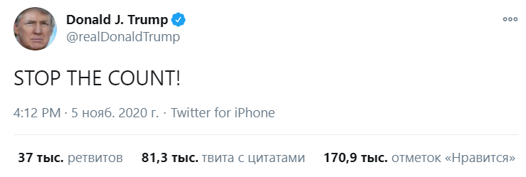 "Остановите подсчет!" - призывает американский лидер.