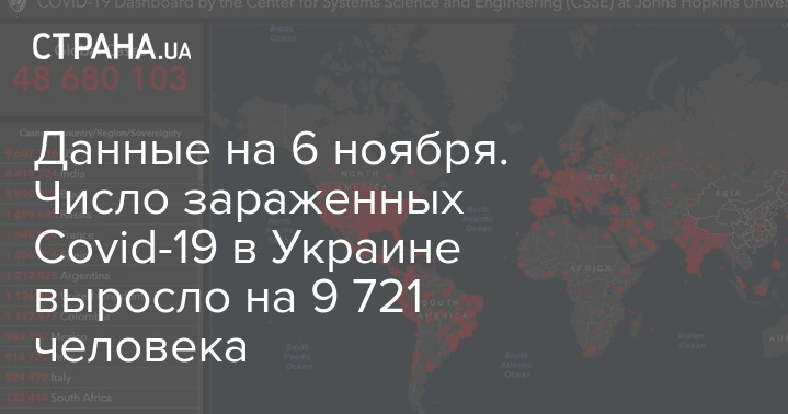Данные на 6 ноября. Число зараженных Covid-19 в Украине выросло на 9 721 человека