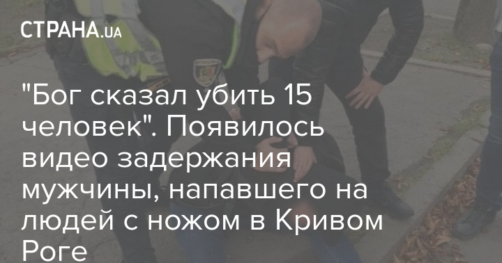 "Бог сказал убить 15 человек". Появилось видео задержания мужчины, напавшего на людей с ножом в Кривом Роге