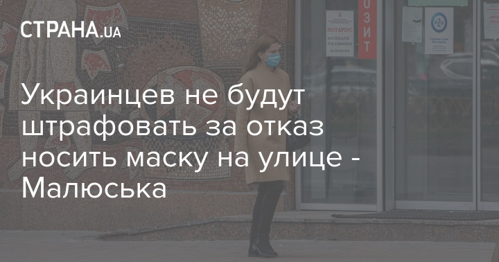 Украинцев не будут штрафовать за отказ носить маску на улице - Малюська