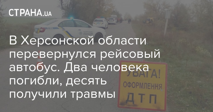 Утром в понедельник, 9 ноября, в Херсонской области рейсовый автобус попал в ДТП. В результате погибли два человека, 10 получили травмы различной степени тяжести.