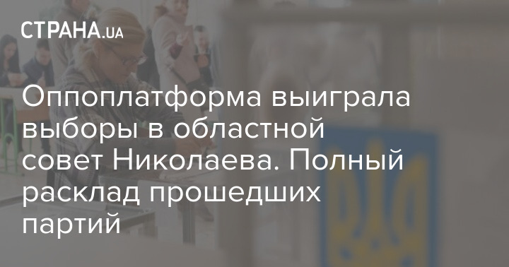 Согласно итогам местных выборов в Украине, в Николаевский областной совет прошли шесть партий. Больше всех в облсовете будет депутатов от партии "Оппозиционная платформа – За жизнь" (18 человек).