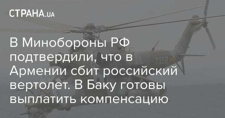 В Министерстве обороны Российской Федерации подтвердили информацию о том, что российский ударный вертолет Ми-24 был сбит в Армении недалеко от границы с Азербайджаном. Также в ведомстве признали гибель двоих российских военнослужащих. А Азербайджан изъявил готовность возместить потери России.
