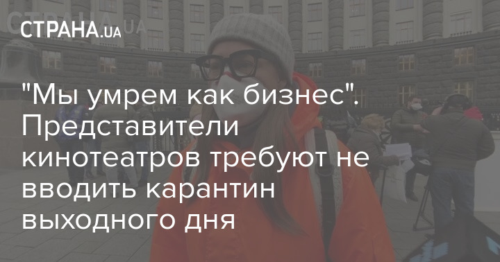 К акции протеста против карантина выходного дня, которую устроили рестораторы у Кабмина, присоединились также сотрудники кинотеатров. Они утверждают, что введение ограничений на работу в субботу и воскресенье будет означать для них потерю всей выручки.