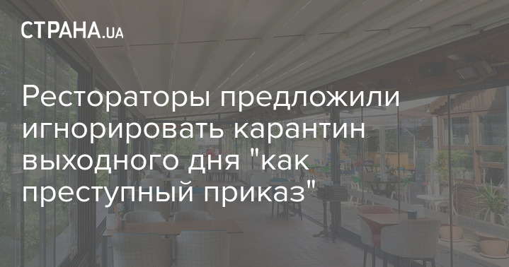 Украинские рестораторы возмущенны введением карантина выходного дня, решение о котором в среду принял Кабмин. Один из сотрудников сферы общепита предложил игнорировать новые режим "как преступный приказ".