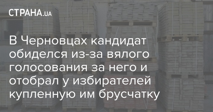 В Черновцах кандидат в депутаты местного горсовета, пообещавший ради пиара сделать людям дорогу и оплативший доставку строительных материалов, после выборов забрал их. Он разозлился на то, что за него отдали слишком мало голосов.
