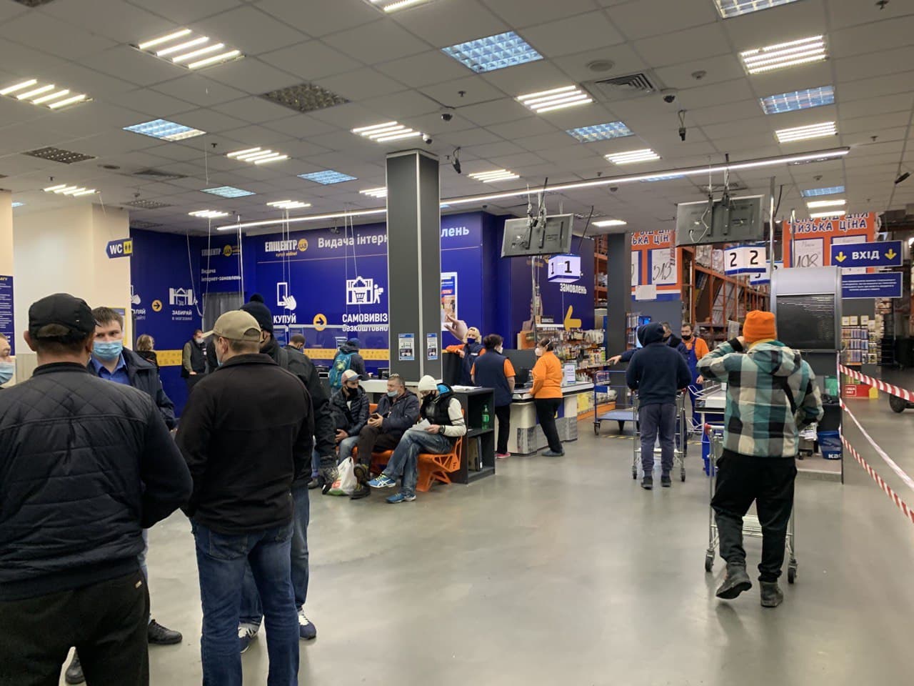 08:00 С утра в гипермаркетах "Эпицентр" столпились люди, которые пришли получать свой товар, заказанный по интернету.