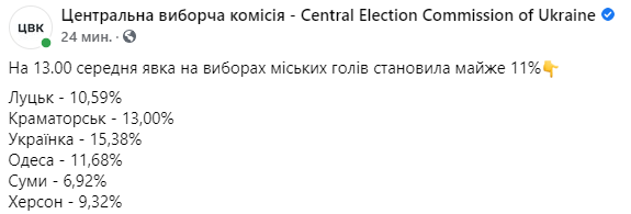 17:02 По состоянию на 16:00 интегрированная явка избирателей в Луцке, Одессе, Сумах, Херсоне, Каменец-Подольском, Краматорске и Украинке составила 18,6%. Об этом сообщила гражданская сеть "Опора".