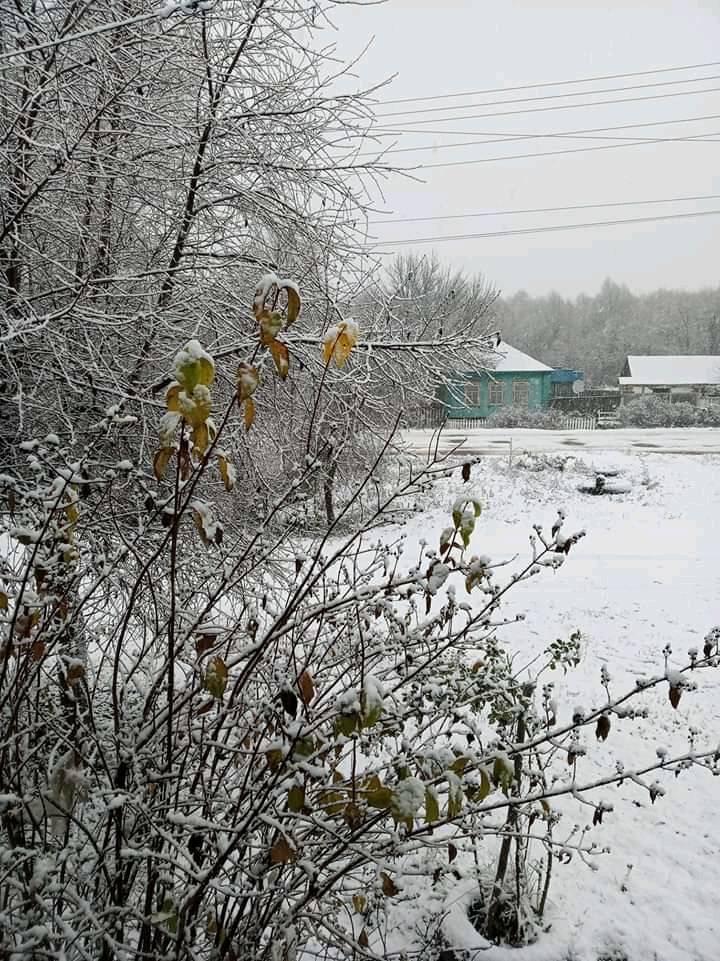 "Ночью 15 ноября на севере Сумской области выпал первый снег, образовался покров высотой 4-6 см. На фото Шалыгино, Глуховский район", - говорится в сообщении.